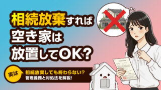 相続放棄すれば空き家は放置してOK?実は“放棄しても終わらない問題”と最適な対処法 ・親が亡くなって実家が空き家になった。・実家を相続したくない(維持できない)から、相続放棄すればいいのでは?多くの人が考えることですが、相続放棄=空き家問題の完全解決ではありません。本記事では、 相続放棄しても残る義務 相続放棄の落とし穴 ... 空き家の法律・税金 2025.11.28 空き家の法律・税金